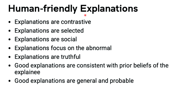 Concepts → the degree to which a human can understand the cause of a decision Interpretability is the degree to which a human can consistently predict the model’s result